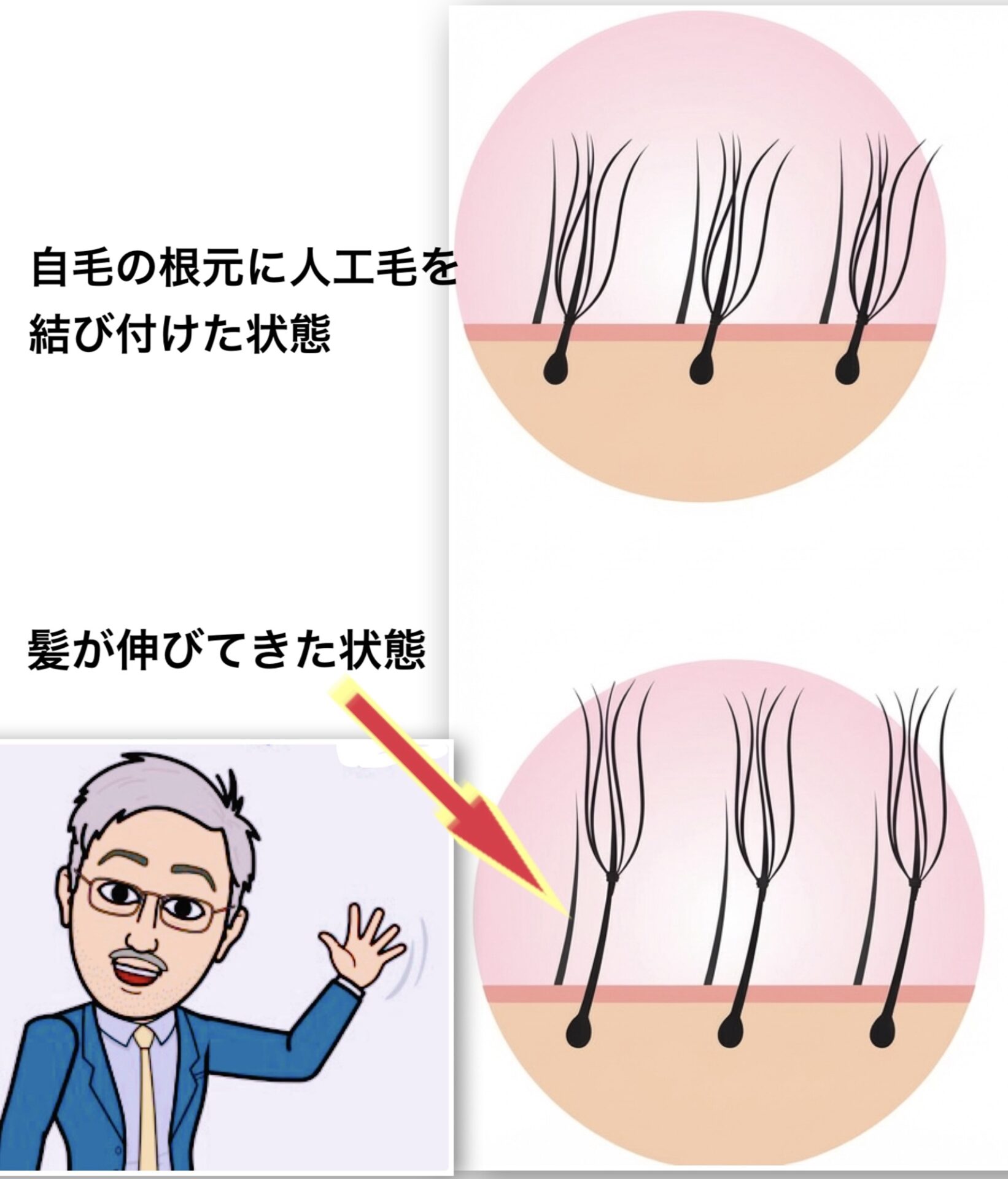 ・自毛が抜ければ、人工毛も一緒に抜け落ちる